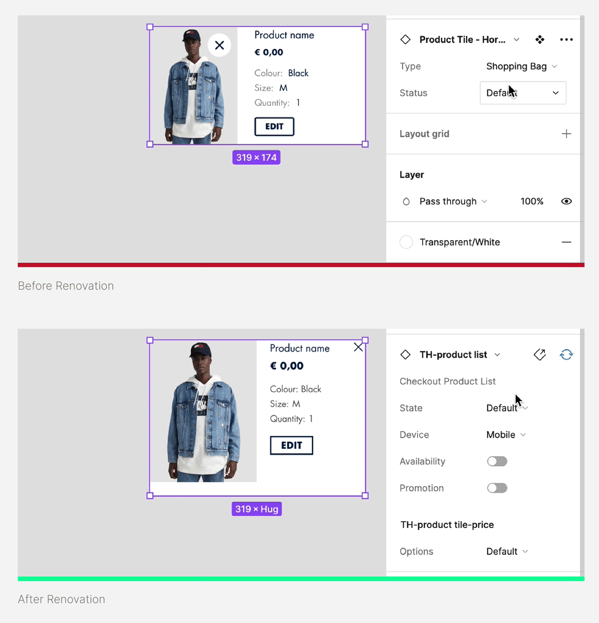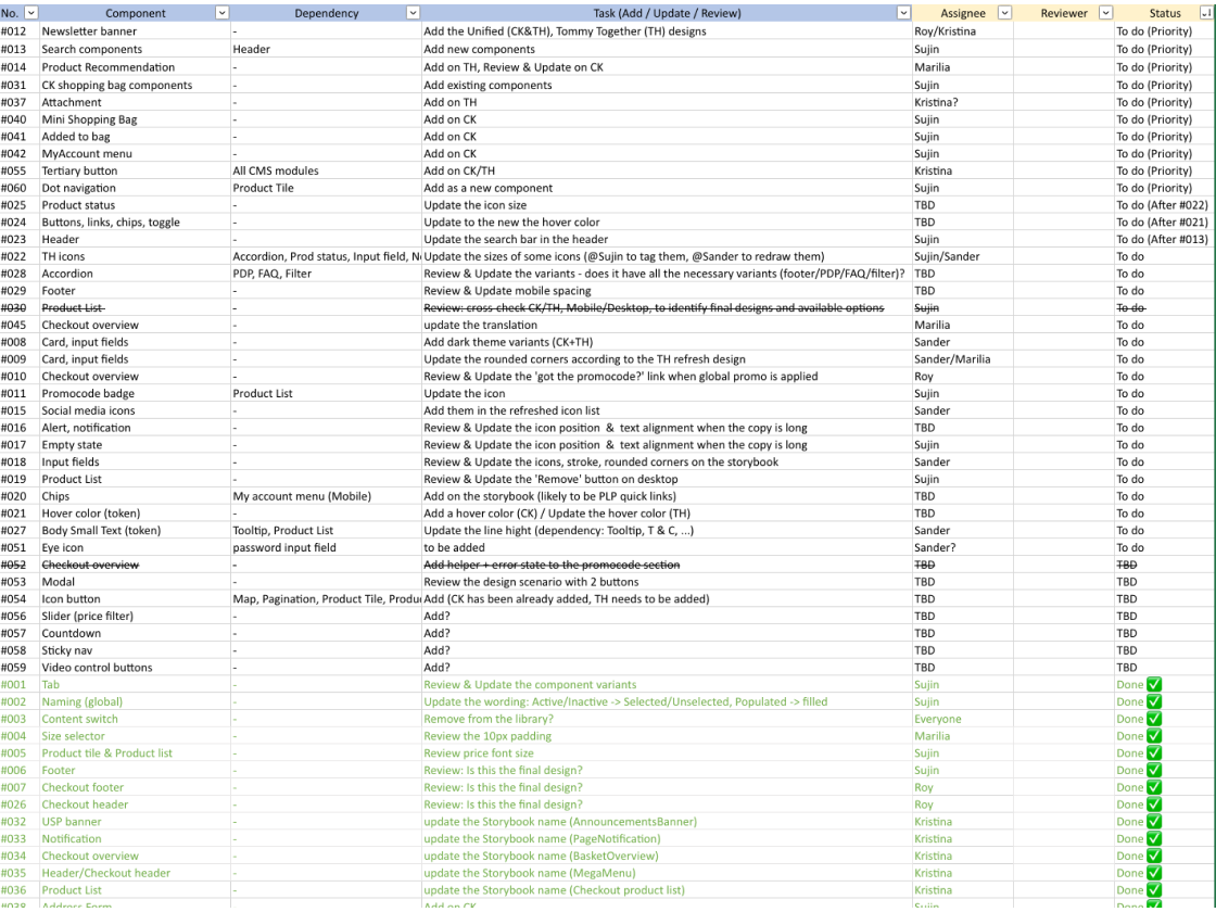 accountability, we included the component name, task type (add, review, or update), assignee,